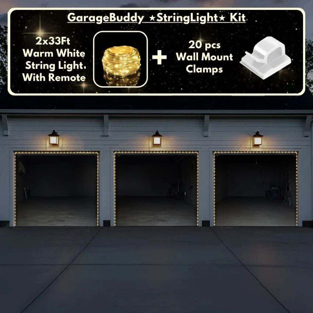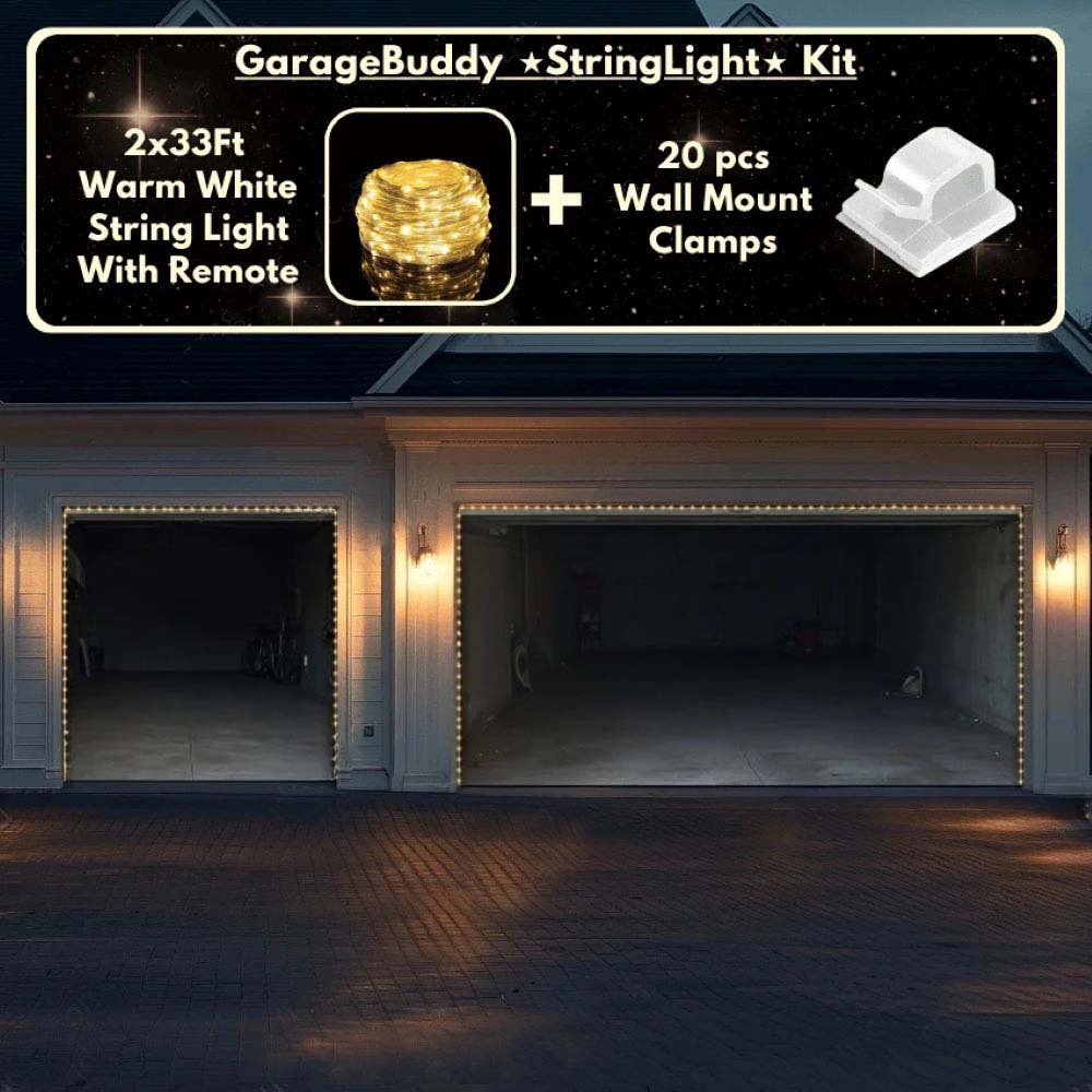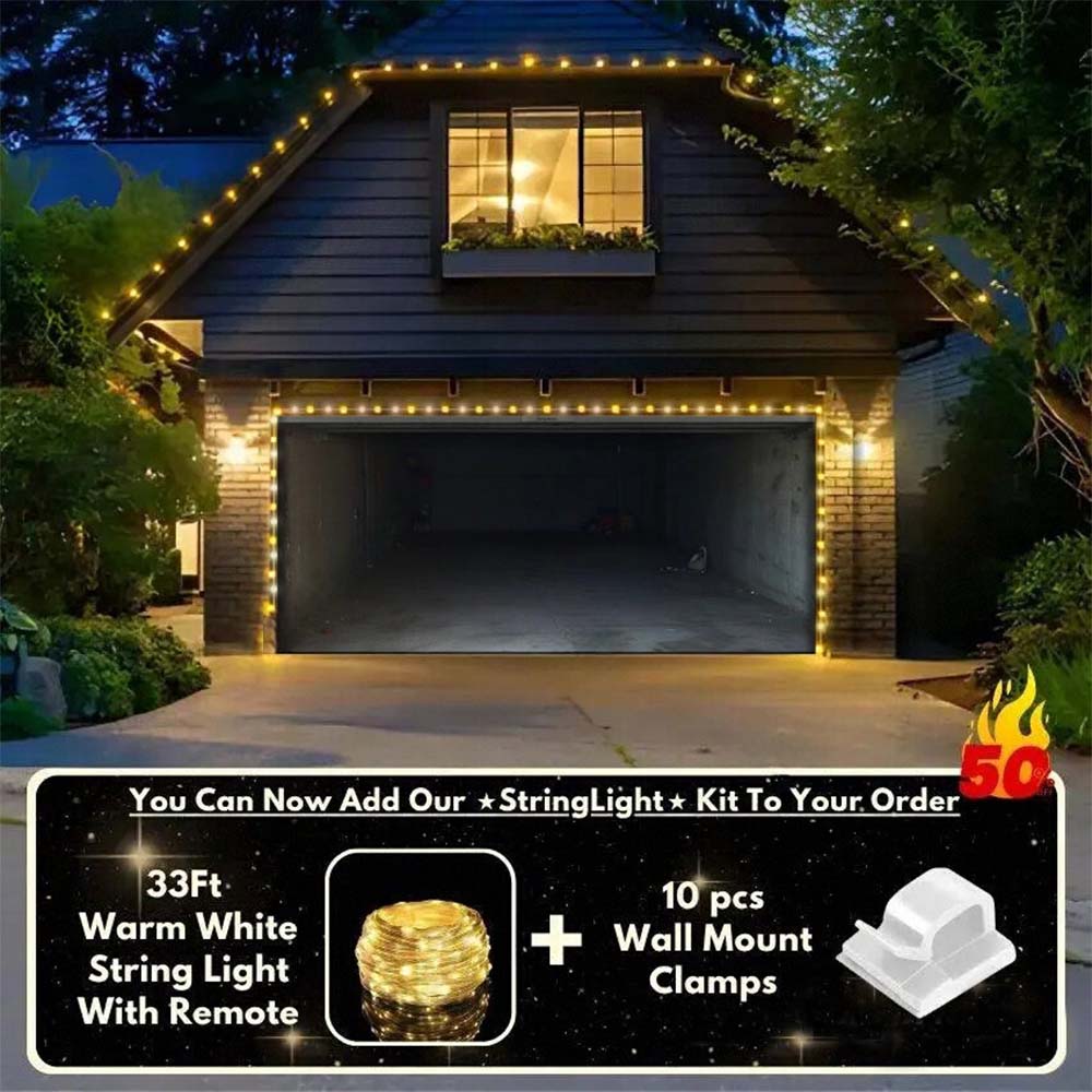 You now have the option to add the string light kit to your order at 50% Off and turn your garage into a true winter wonderland. The kit includes 1x 33ft warm white string light, a remote control, and 10x sticky wall mount clamps.