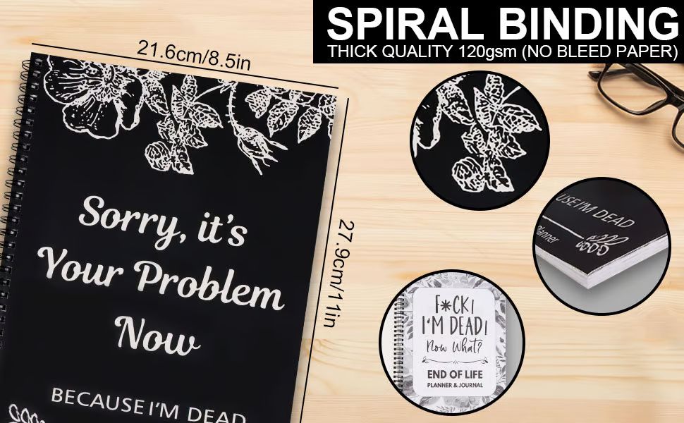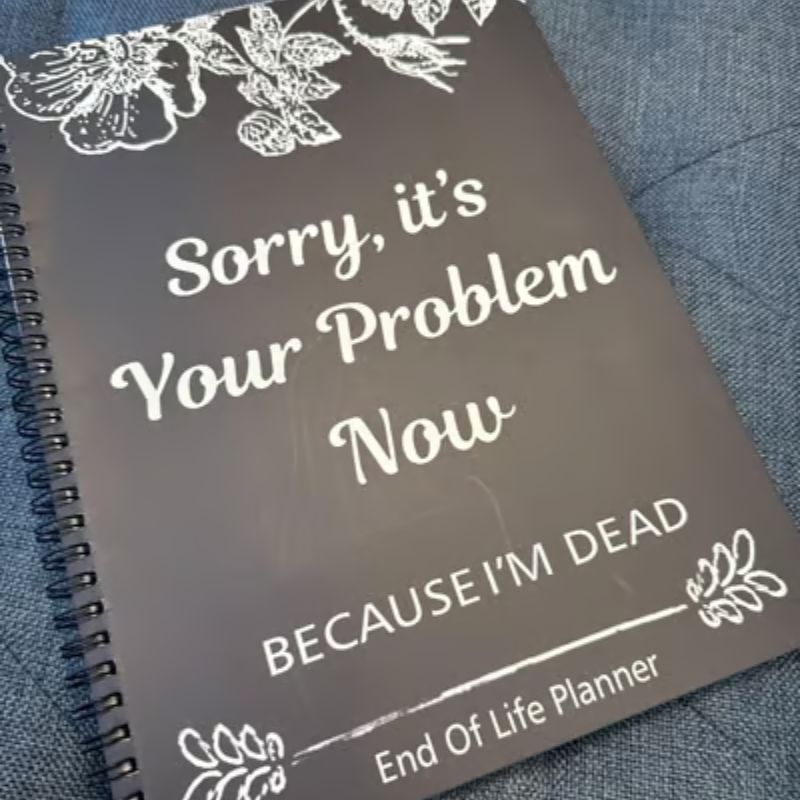 The "Sorry, It’s Your Problem Now, Because I’m Dead" planner tackles a serious subject with a light-hearted twist. It makes future planning more manageable and even fun. From financial details to end-of-life care wishes, this planner covers everything with both thoroughness and humor.