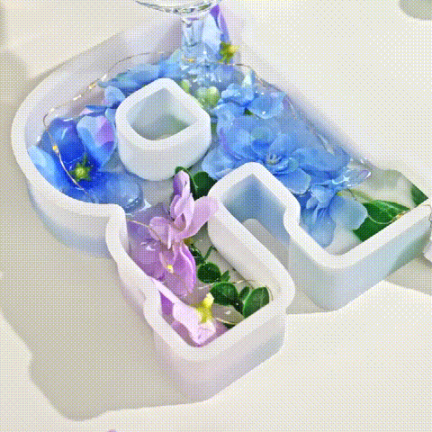 Embedded within the resin are delicate dried flowers, preserving their natural beauty and creating a mesmerizing visual effect when illuminated. Each flower is carefully selected for its color, shape, and texture.