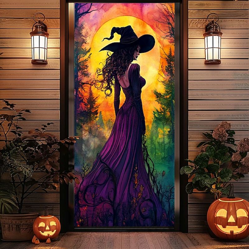 Enchanting Witch Halloween Door Cover - Perfect for Front Door Decoration