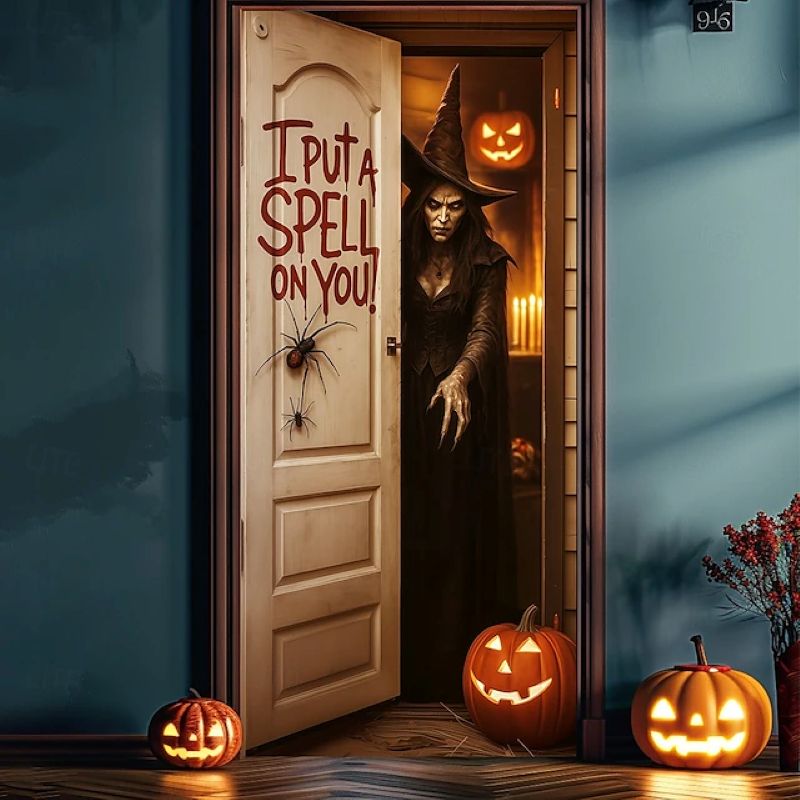 Enchanting Witch Halloween Door Cover - Perfect for Front Door Decoration