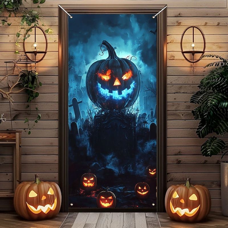 Keywords: Halloween door cover, witch door decoration, front door Halloween banner, outdoor Halloween decor, farmhouse Halloween door curtain, durable Halloween tapestry.