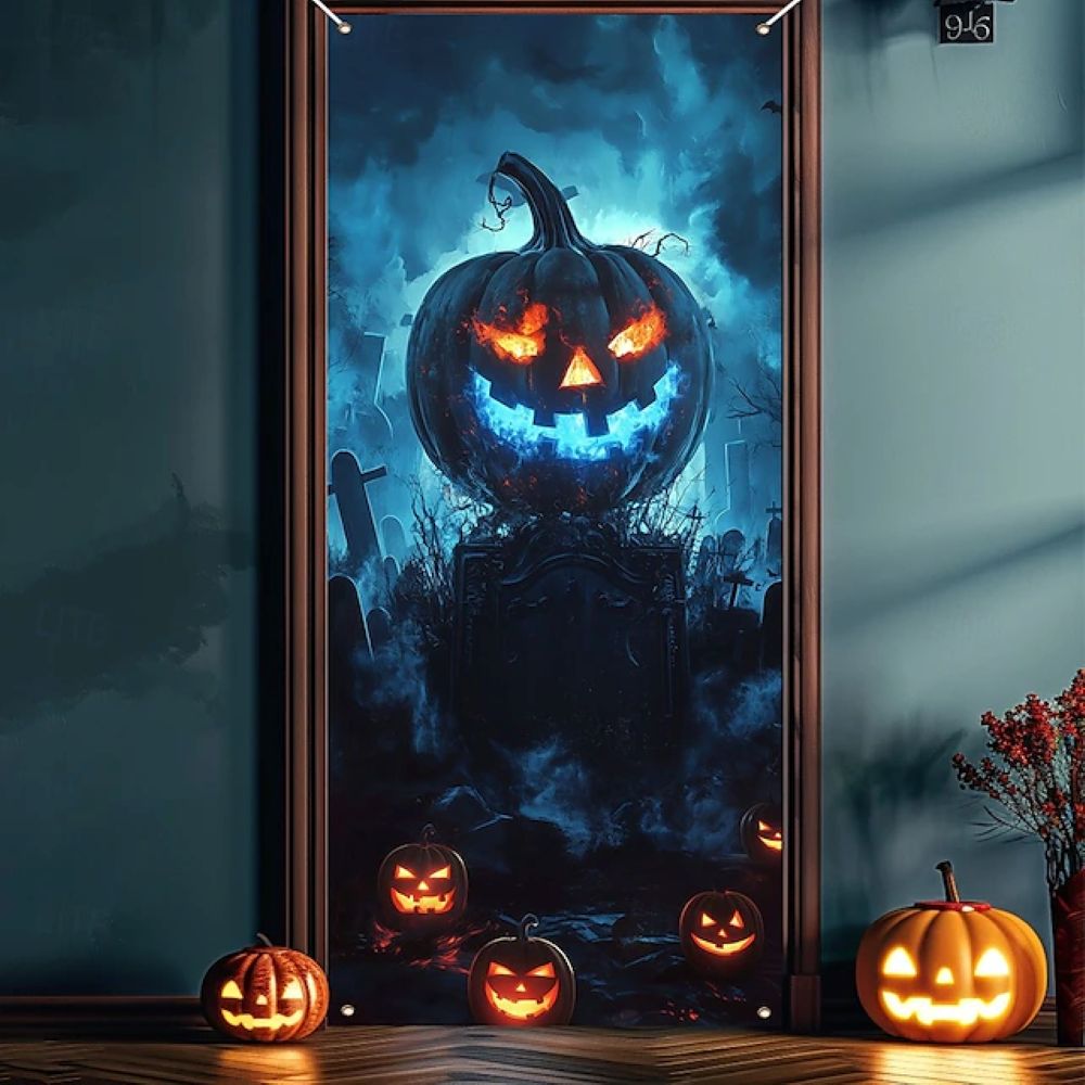 Haunted Graveyard Halloween Door Cover - Perfect for Front Door Decoration