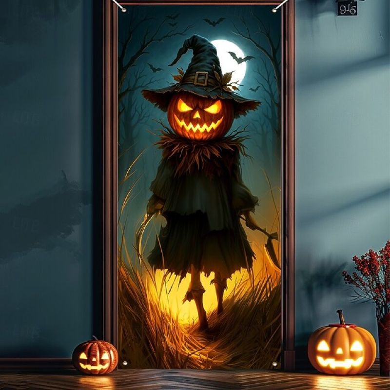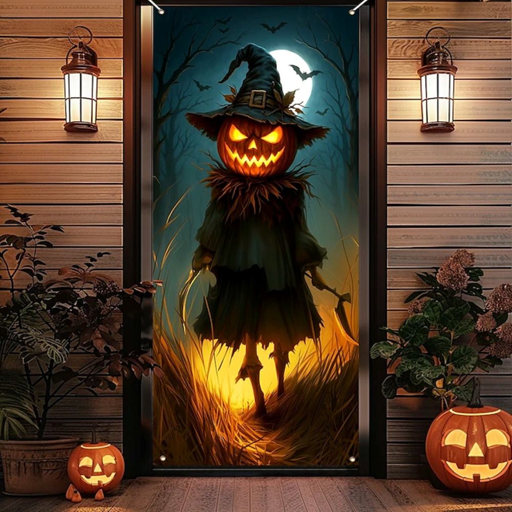 Keywords: Halloween door cover, witch door decoration, front door Halloween banner, outdoor Halloween decor, farmhouse Halloween door curtain, durable Halloween tapestry.