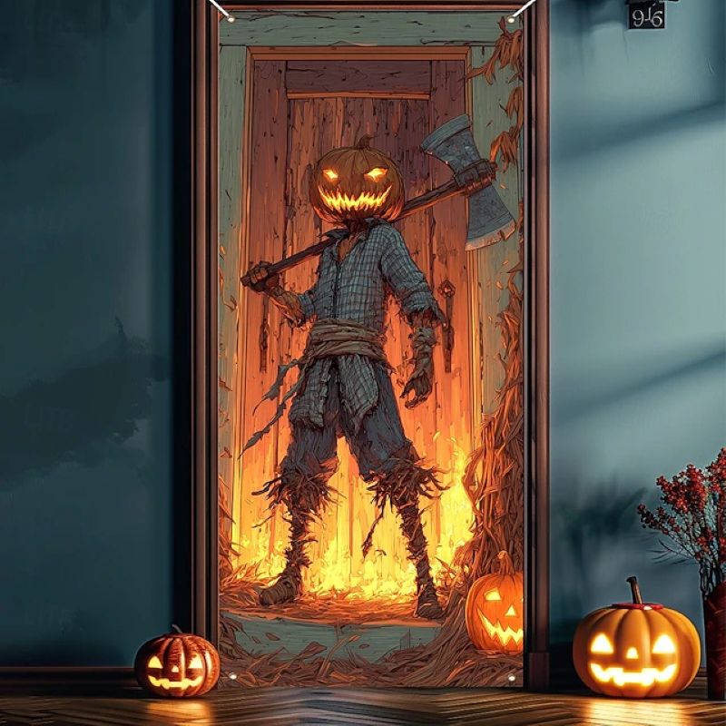 Weird Pumpkin Halloween Door Cover - Perfect for Front Door Decoration