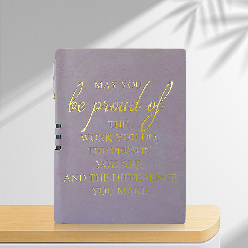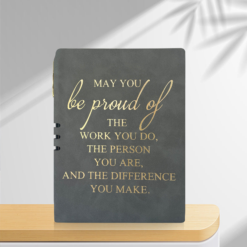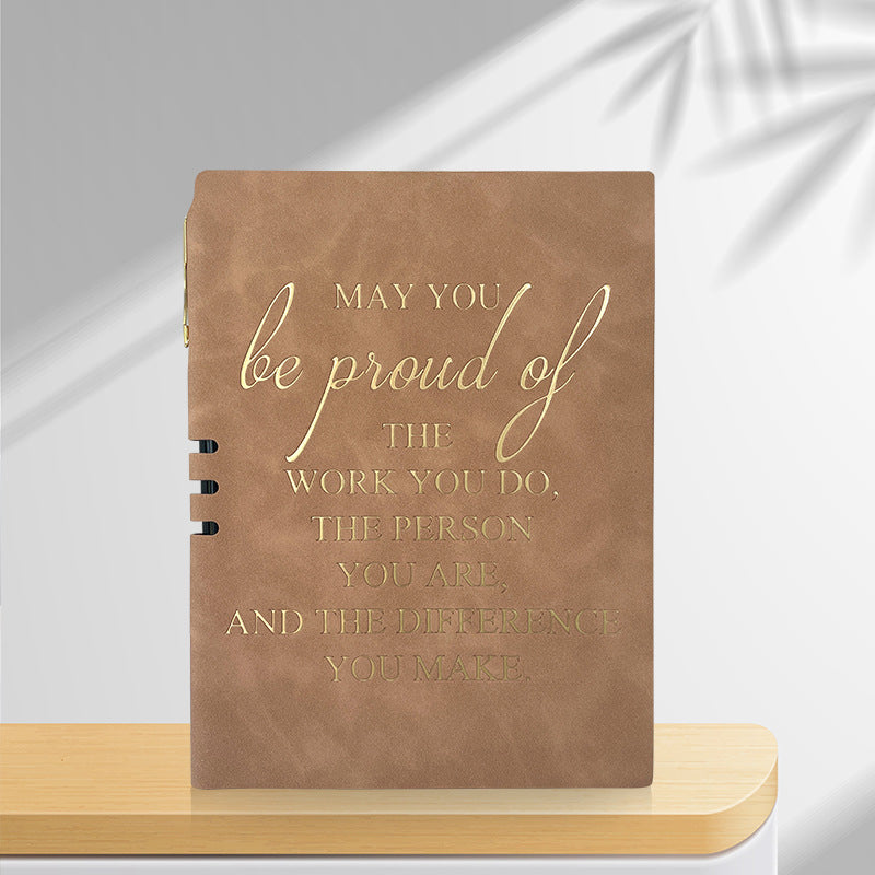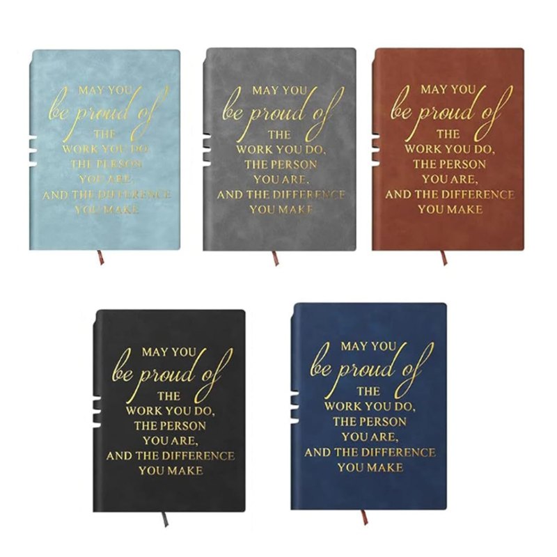 Employee Work Gifts: You will receive an employee gift - Employee Motivation Notebook. The notebooks are available in 8 colors, including brown, black, navy, Blue, and gray .ect. Each employee notebook contains 100 sheets/200 pages, which is enough for writing and long-term use.