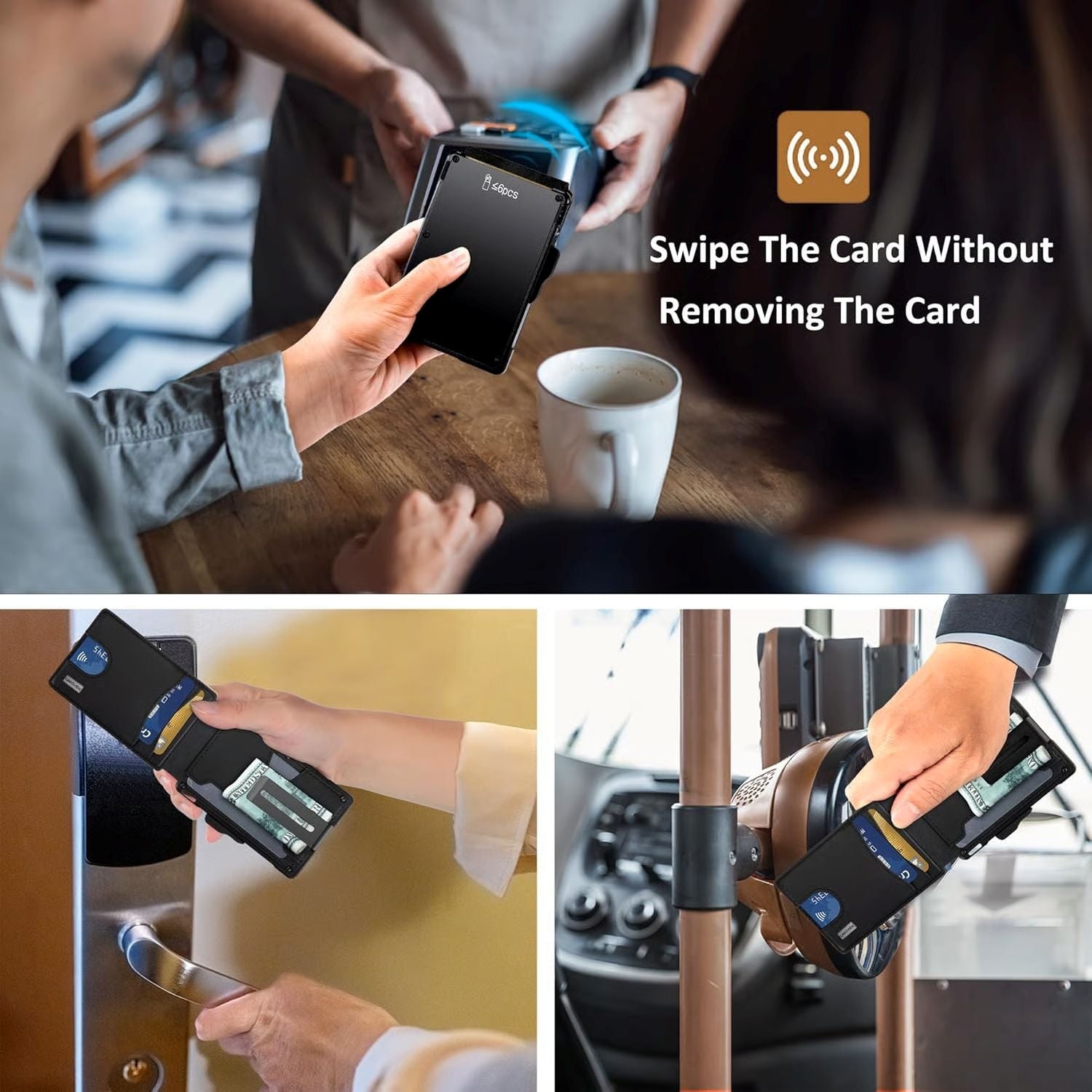 Enough Space: 12 Cards can be inseted in this lightweight and compact wallet, with 3-4 additional cards (1 ID windows included) in the cover, another 6 cards can be stored in the aluminum champer of the wallet, 1 or 2 cards can be inserted in outside of the aluminum champer. A money clip on the inside of the card holder helps you store cash, while an automatic card slot allows you to remove credit cards or ID cards faster.