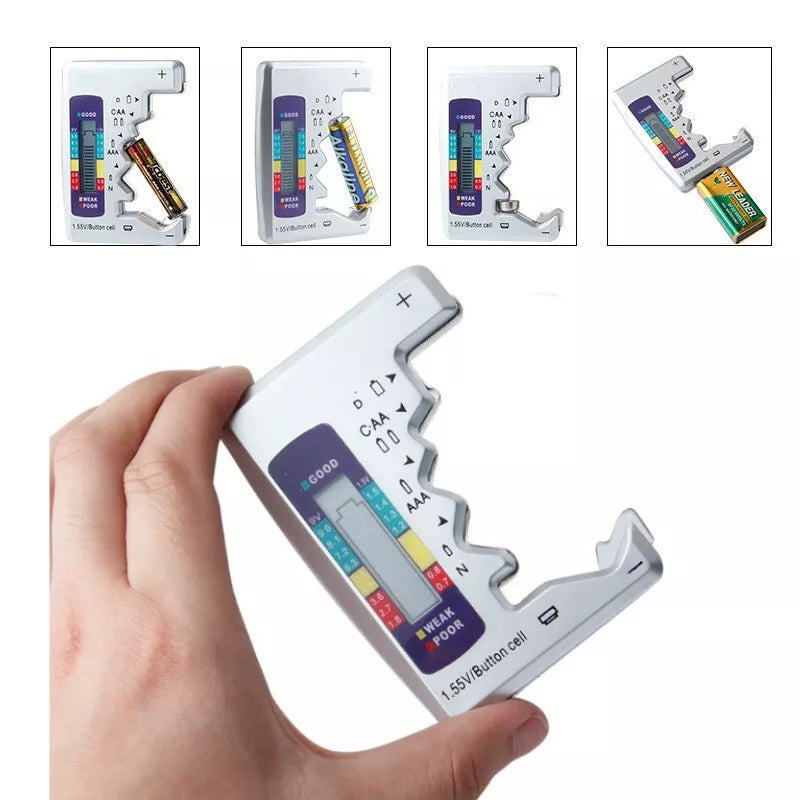 Supports C、AA、AAA、D、N、9V 6F22 batteries and 1.55V buttoncell. Built of durable plastic and stainless steel.No power isrequired, the battery under test provides the energy test.